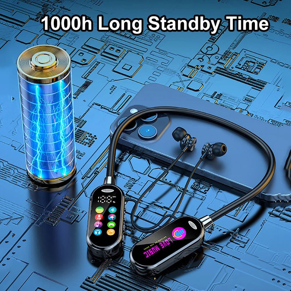 The ergonomic neckband design offers lightweight comfort for long hours of use, while the built-in color screen adds a stylish and tech-forward touch. With HiFi stereo sound, deep bass, and advanced noise reduction, these earbuds deliver crystal-clear audio for calls, streaming, and gaming.