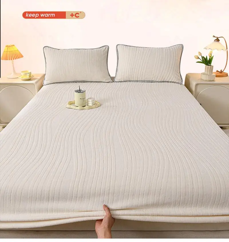 Keep your bed warm, stylish, and protected with our Carved Thickened Milk Velvet Fitted Sheet. Designed for winter comfort, this ultra-soft and cozy mattress cover combines luxury with functionality. The thickened milk velvet fabric provides extra warmth during cold nights, while its elastic fitted design ensures a snug, slip-resistant fit. With a carved textured pattern, it adds elegance to your bedroom while protecting your mattress from dust, dirt, and daily wear. A perfect choice for winter bedding, this fitted sheet is durable, washable, and ideal for family use.