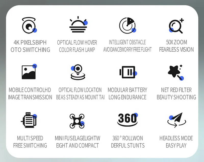 Take your aerial adventures to new heights with the CS8 Mini Drone, a 4K professional dual-camera quadcopter designed for fun, creativity, and ease of use. Featuring a wide-angle adjustable ESC camera, you can capture breathtaking landscapes, group photos, and smooth HD videos.