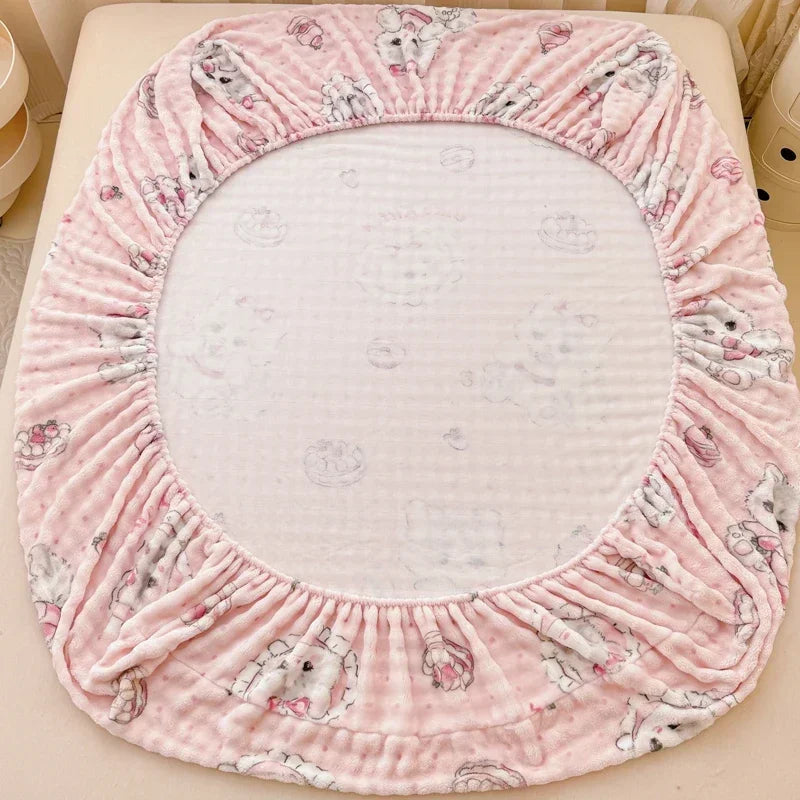 Wrap your bed in warmth and style with this Fluffy Plush Fitted Bed Sheet. Made from soft long hair fleece with adorable cartoon designs, it fits double beds perfectly and keeps you cozy all winter. Easy to maintain, durable, and ultra-comfy for a dreamy sleep experience.