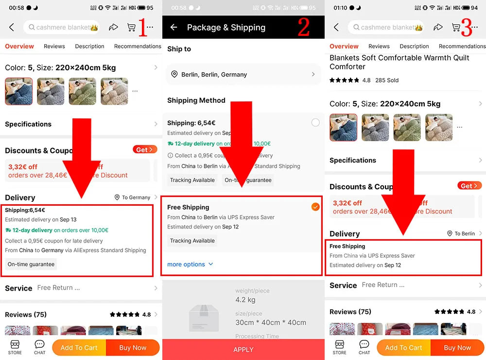 The product is free shipping, if it shows that you need to pay for shipping when you pay, please change the logistics method to UPS or Fedex IP and this order will be free shipping. Tutorial for changing the logistics method: 1, Click on the area where the logistics is displayed. 2,Click on the logistics method you want to change (UPS or Fedex IP) and click Apply below. 3,The logistics method has been changed successfully and the delivery is free of charge. 1. Material A side:Tafu velvet; B side:Artificial Lamb cashmere;