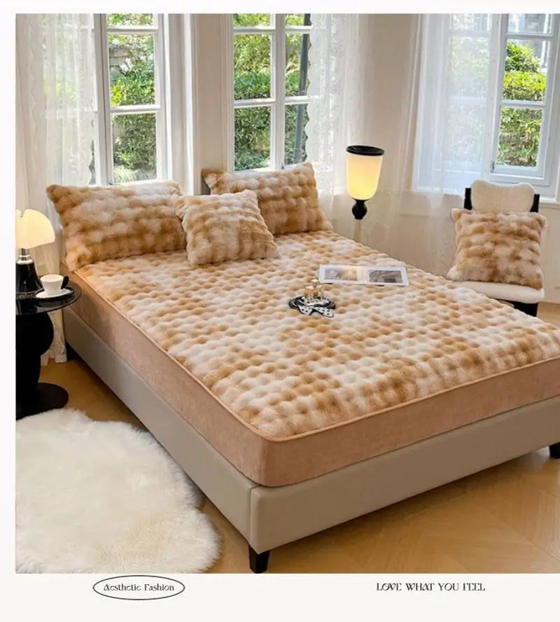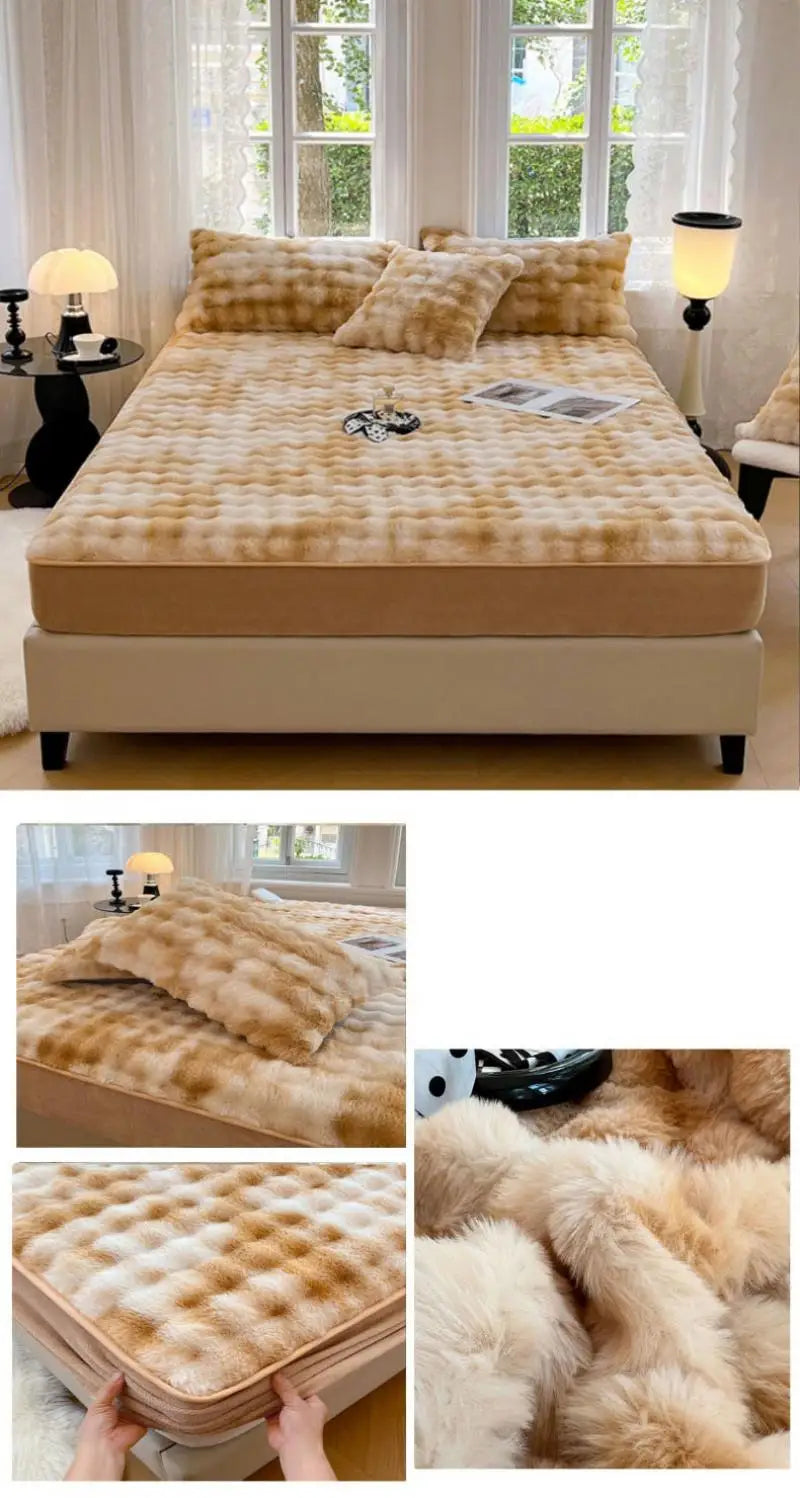 Stay warm and cozy this season with our Rabbit Plush Fitted Sheet, crafted from premium thick coral fleece for unmatched softness and comfort. Designed specifically for autumn and winter, this super soft fitted sheet ensures a snug fit with its elastic edges, keeping your mattress covered and protected.