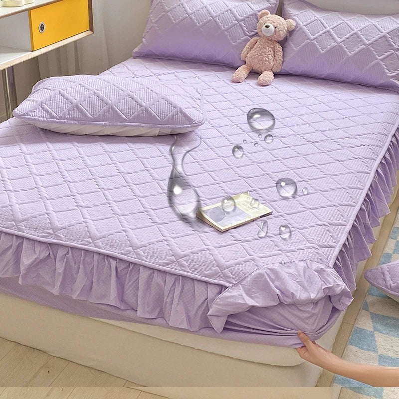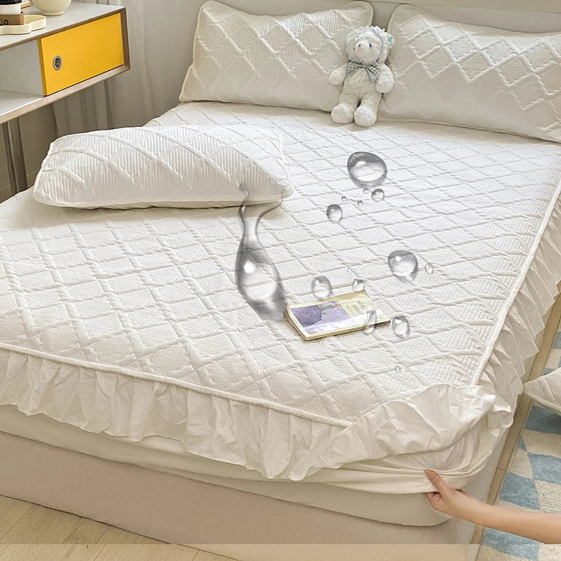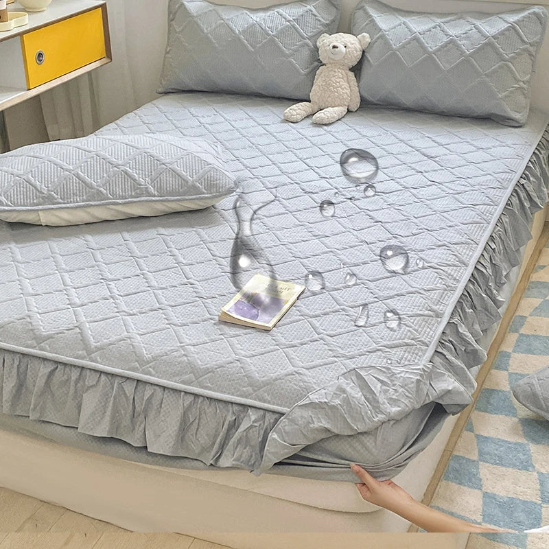 Waterproof Bed Skirt: Protects against spills and stains