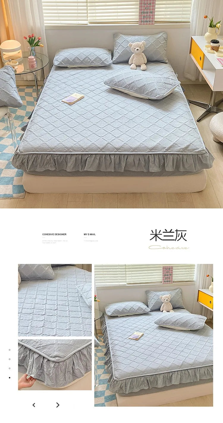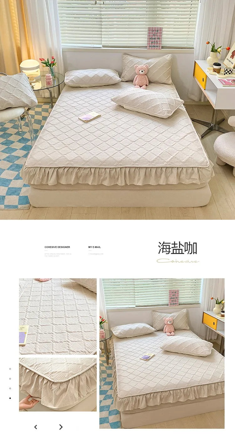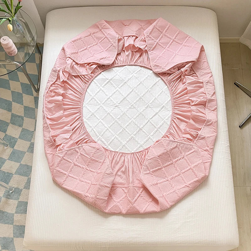 Enhance your bedroom with the Super Nordic Thick and Warm Fitted Sheet, designed to keep you cozy throughout the night. Featuring premium elastic bands for a snug fit, this fitted sheet stays in place, offering ultimate comfort and support. The built-in waterproof bed skirt provides a stylish, functional addition, while the soft pink color adds a princess-like charm to your bed. Perfect for any modern home, this mattress cover is ideal for those seeking a blend of style, comfort, and protection.