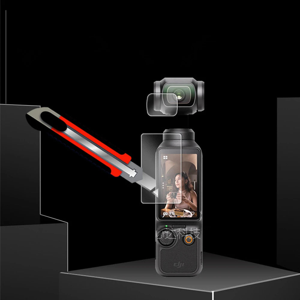 Keep your DJI Osmo Pocket 3 safe from scratches, dust, and damage with this premium tempered glass screen protector and lens cover set. Specially designed for the third-generation Osmo Pocket camera, this protective film and cover case provide crystal-clear visibility and full-screen touch sensitivity without compromising camera quality.