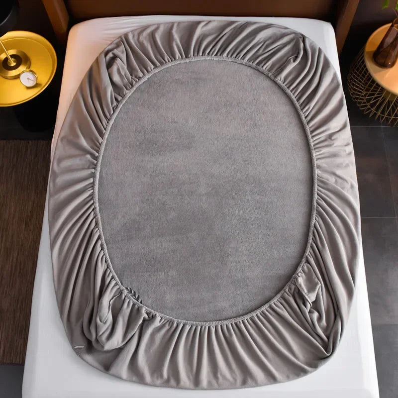 Winter Warm Solid Flannel Fitted Sheet | Elastic Band Mattress Protector | King Size 180x200cm | Milk Velvet Bed Sheet