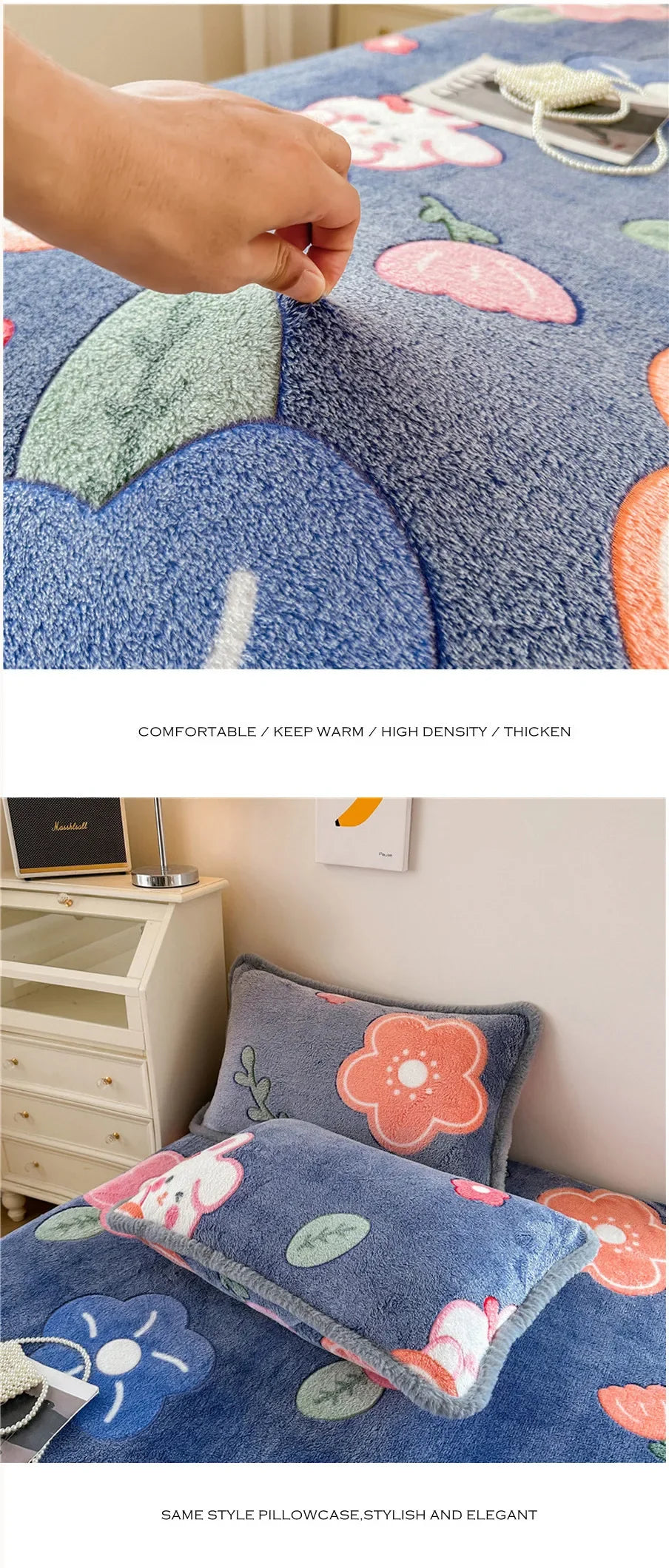 Winter thermal velvet fleece fitted sheet elastic mattress protector cover double bed couple fluffy flannel bed linen 150